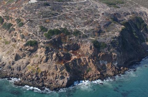 I went to an un-named spot north of Malibu that has a rocky shoreline and requires some climbing to get to. I decided to try fishing tight to the rocks as Sebastes often does. I brought no bait, just an assortment of plastics and some "Calico ****tail" scent.