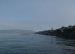 Saturday late afternoon I got out to the inner reach of the south jetty around 5:45 and launched my X-Factor. I knew I only had about 30 minutes before high tide, so I didn't want to veture too far out along the jetty with the tide fixing to turn and flow out. I fished until about 6:45 to just out from the parking lot. Caught one tiny little lingcod on the shrimpfly - it was about 4 inches long! Nothing else doing - lots of eel grass in the water, but clarity good. I wished I had more time before the tide turn.